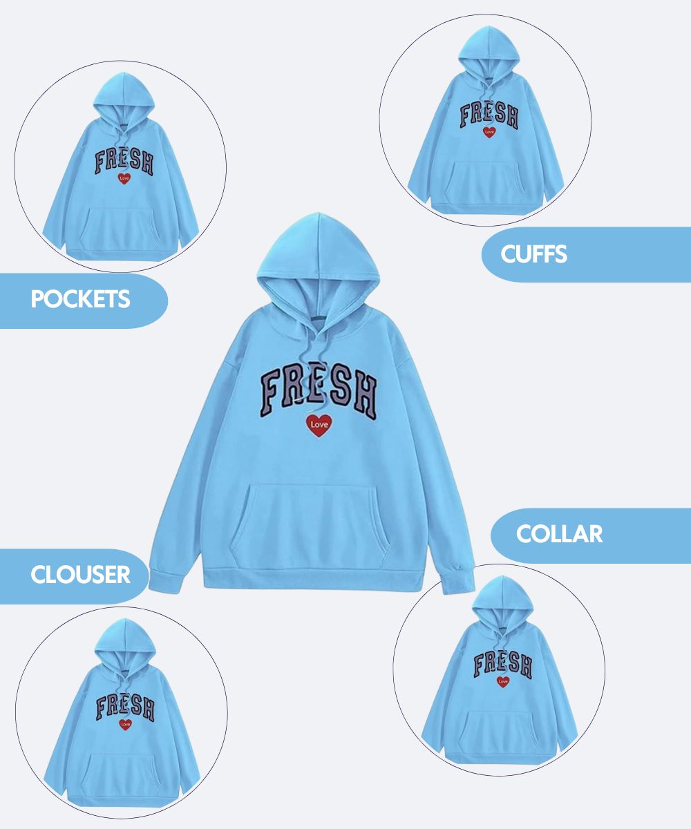 A hoodie is a sweatshirt which comes with a hood that covers the head partly or fully. They usually are made from soft and warm materials like cotton or fleece and also have a drawstring to adjust the hood opening.